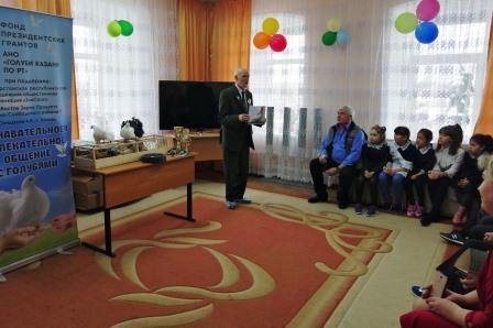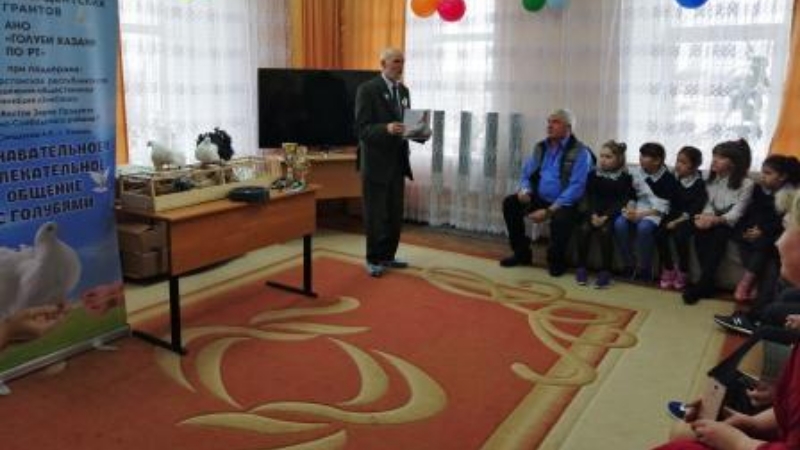 Активистлар белән бергә Виктор Александр улы Данилов - Россиянең атказанган күгәрченчесе кунакка килде. Ул балаларга үзләренең күптәнге яраткан эше турында сөйләде - төрле токым күгәрченнәр үрчетү белән генә түгел, киләчәктә ярышларда катнашу өчен спортчы-күгәрченнәрне ойрәтергә дә жыена. Виктор Александр улы «Казан панцирные» токымлы күгәрченнәр белән халыкара һәм бөтен Россия күргәзмәләрендә катнашты. Аның «дуслары» күп тапкырлар алтын медаль яулады. Безнең балалар зур кызыксыну һәм игътибар белән күгәрчен үрчәту тарихын, Бөек Ватан сугышы елларында күгәрчен почтасы әһәмияте турында сөйләде. Чарада шулай ук «Татарстан Республикасы буенча Казан күгәрченнәре» оешмасы җитәкчесе Варянина Валерий Николай улы һәм активистлар Вәлиева Наталья, Трофимов Никита балаларга төрле күгәрченнәр токымнарын күрсәтте: Казан панцирлары, мраморные, бөдрә күгәрченнәр һәм күгәрчен-спортчылар. Чара ахырында фотосессия оештырылды, анда балалар кошлар белән якыннан таныша алдылар, шулай ук балаларга кечкенә бүләкләр өләштеләр .