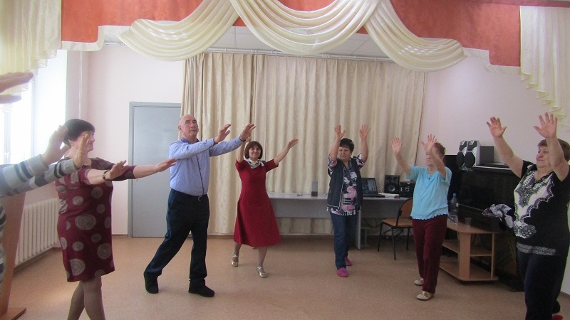 Белгеч социаль хезмәт алучыларны бию түгәрәге программасы белән таныштырды һәм музыкаль-ритмик хәрәкәтләрнең кан әйләнешен, сулыш процессларын яхшыртуын һәм йөрәк мускулларын ныгытуын аңлатты. Белгеч, теләге булганнарны, чараның төрле өлешендә катнашырга чакырды; аларның яхшы кәеф алу һәм үз-үзләрен күрсәтү ихтыяҗын канәгатьләндерү мөмкинлегеннән файдалана алуларын искә төшерде. Катнашучылар фигуралы вальс әйләнешенең төрле элементларын җентекләп, тасвирлап карадылар һәм үзләре бу хәрәкәтләрне практикада ясадылар.