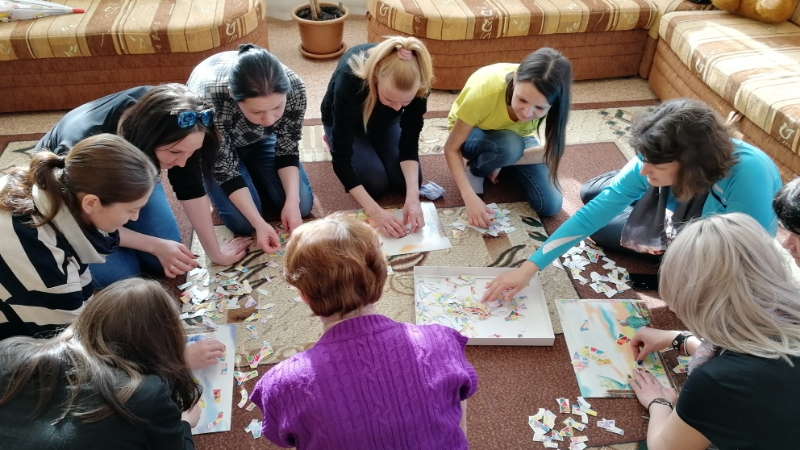 “Алмаз”, “Диңгез” дип аталган релаксация күнегүләрен психолог катнашучыларга талгын көй астында үтәргә тәкъдим итте. Әлеге биремнәр катнашучыларга тынычланырга, сулышларын тигезләргә, бөтен хаотик фикерләрне тупларга мөмкинлек бирде. Аннан соң катнашучылар “Мозартика” методикасының “Дөнья образы - томаннар" уенында кырларны тутырдылар, ул аларның эмоциональ халәтен, шул исәптән стресс дәрәҗәсен билгеләргә, эчке каршылыклар, шәхси проблеманы ачыкларга, уйнаучыларга үзара мөнәсәбәтләре турында күзаллау алырга мөмкинлек бирде.