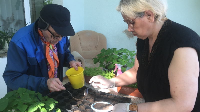 Март аенда биредә тәрбияләнүче, бакчачылык һәм үсемлекләр дөньясы белән тирән кызыксынучылар интернат-йорт шартларында чәчәкләр һәм яшелчә орлыкларын чәчтеләр. Апрель аенда үсентеләрне, бүлмә гөлләрен аерып утырттылар. Моннан тыш, үсентеләргә вакытында су сибү һәм өстәмә тукландырып тору буенча да эш алып барыла. Ә инде һава шартлары җәйге челләгә күчкәч, интернат хезмәткәрләре белән берлектә үсентеләрне интернат-йорт мәйданчыгындагы теплицага һәм аның тирәсендәге бакчага күчереп утырталар. Шул рәвешле, гарденотерапия технологиясе өлкәннәр һәм физик мөмкинлекләре чикле кешеләрнең яшәү рәвешенә әйләнә.