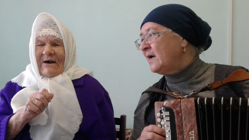 19 апрель көнне культорганизатор Заһидуллина А. З. Мөслим картлар һәм инвалидлар интернат-йортында мөмкинлекләре чикләнгән өлкәннәр белән вокалотерапия буенча дәрес үткәрде. Учреждениедә өлкән яшьтәге кешеләрнең сәламәтлеген саклауга һәм реабилитация чараларына аерым игътибар бирелә. Медикаментлар кулланмыйча гына дәвалауда уңай динамикага ирешергә мөмкинлек бирүче технологияләр арасында вокалотерапия – музыка белән дәвалану аерым урын алып тора. Социаль хезмәтләрдән файдаланучылар Закиров Г. Г. һәм М. Ф. Чернышова үз бүлмәләрендә вокал терапиясы белән бик теләп шөгыльләнделәр. Шөгыль вокал, артиткуляцион күнегүләр белән башланды. «Һава шары», «Насос», «Җылы куллар» тын алу күнегүләре, аерым тавышлар өстендә күнегүләр ясадылар. Релаксация максатыннан музыкаль-ритмик күнегүләр ясадылар. Дәрес ахырында тәрбияләнүчеләрнең яраткан җырларын башкардылар.