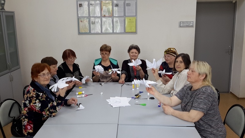 “Изгелек” инвалидларны тернәкләндерү үзәгендә хезмәт буенча инструктор Зәмфирә Суфьянова социаль хезмәт алучыларга беренче май яки хезмәт бәйрәменә багышлап, кәгазьдән тынычлык күгәрчене ясау буенча мастер-класс үткәрде.