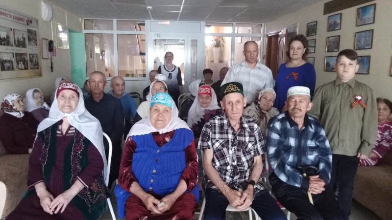 «Тыныч күк»видеопрезентациясе яшәүчеләр күңелендә зур кызыксыну уятты. Үзәк китапханә хезмәткәрләре сугыш турында шигырьләр сөйләделәр, сугыш еллары җырларын искә төшерделәр, «Без аларның исемнәрен хәтерлибез» һәм «Батырлык елъязмасы» китап күргәзмәләре белән таныштырдылар.