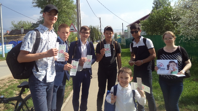 Акция кысаларында район урамнарында гаиләгә һәм балаларга социаль ярдәм бүлекчәсе белгечләре шулай ук балаларга һәм өлкәннәргә балалар ышаныч телефоны номерлары язылган флаерлар тараттылар.