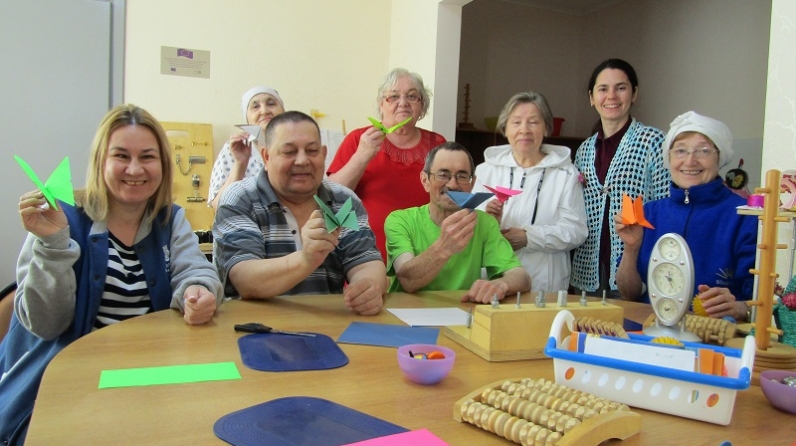 Белгеч кәгазьдән фигуралар ясау сәнгате белән таныштырды. Гади кәгазь битләреннән бик матур күбәләк ясадылар. Кәгазь эшләнмәләре йорт бизәге булып, якыннарының кәефен күтәрә ала. Әлеге чара нәтиҗәсендә аралашу даирәсе киңәйде һәм төркем тагын да берләште.
