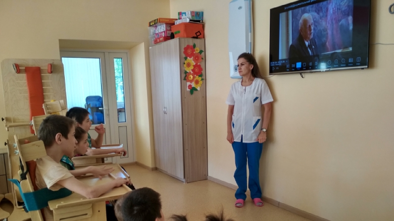 Максат: Балаларның белемнәрен тирәнәйтү, аларны академик А.Д. Сахаровның иҗаты һәм тормышы белән таныштыру. Игътибарлылык һәм танып-белү активлыгын үстерү. Катнашучылар: 6 бала. Буген балалар академик А.Д. Сахаровның тормышы һәм эшчәнлеге турында документаль фильм карадылар. Алар кызыксынып телевизор экранына карап утырдылар, Сахаров белән бергә иҗат иткән шәхеслэрнең хикәяләрен тыңладылар. Алар Сахаровның доньянын иң кочле коралы - водород бомбасын ясауда катнашканын белделәр. Фильм караганнан соң әңгәмә уздырылды, балалар узләренең хис кичерешләре белән уртаклаштылар, аларны кызыксындырган сорауларны бирделәр. Фильм ботенесенә дә бик ошады.