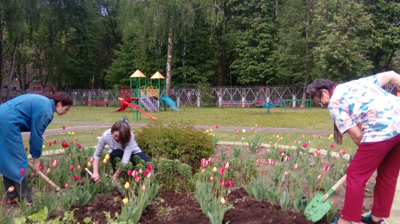 Гамәли өлеш вакытында декоратив чәчәк үсемлекләрен утырту буенча эшләр башкарылды. Аннары физалис методы белән петуния, георгин, настурция үсентеләре утыртылды. Быел бакчада бер клумбаны декоратив бакча рәвешендә рәсмиләштерергә карар ителде.