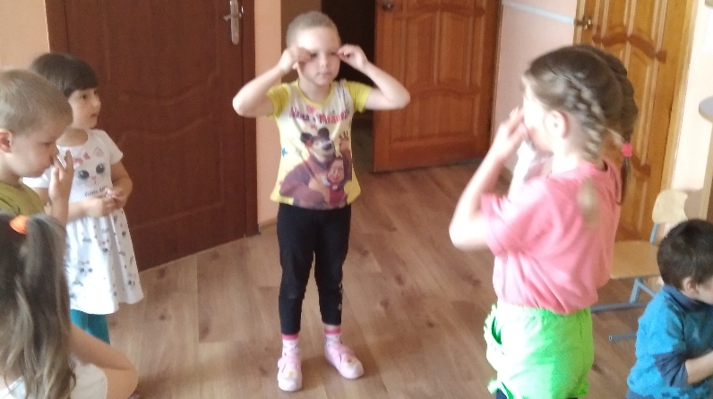 Балалар барысы да бердәм булып бу уеннарда уйный башладылар, чират буенча һәркем паровоз булды, вагончыкларны югалтмаска тырышты. Ә икенче уенда алып баручы кычкырып сүз әйтә һәм тәннең бер өлешен үз өстендә күрсәтә башлый:”колаклар-колаклар”(барысы да колакларын күрсәтә),» иңбашлар «(барысы да иңбашларны күрсәтә),» Терсәкләр – терсәкләр " (барысы да терсәк күрсәтә). Аннары алып баручы уенчыларны махсус бутый башлый: тәннең бер өлешен күрсәтә, ә икенчесен атый. Балалар алып баручының хатасы булган очракта хәрәкәтне кабатламаска тиеш.