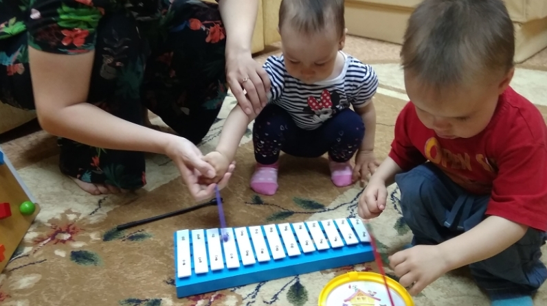 Сабыйның әйдәп баручы эшчәнлеге булып уен тора. Уен формасында балаларның музыкаль сәләте күпкә кызыграк һәм нәтиҗәлерәк үсә. Шуңа күрә дәрестә балаларга кызыклы һәм бәйләнчек булмаган формада аларның музыкаль сәләтләрен үстерүгә ярдәм иткән уеннар тәкъдим ителде. Балалар рәхәтләнеп күңелле җыр астында биеделәр, музыка уен коралларында уйнадылар. Әниләргә кул астындагы материаллардан маракас ясарга тәкъдим ителде: әниләр пластик савытны кәгазьдән ясалган аппликацияләр белән бизәде, ә балаларалар аны фасолинкалар белән тутырдылар. Аннан соң бу шау-шулы уен кораллары музыка хәрәкәтләрен башкарганда кулланылды, алар барышында баланың музыкаль үсеше: ритм хисе үсте, хәрәкәтләр, ишетү, хәтер, игътибар артты.