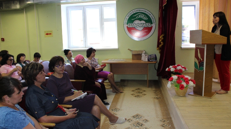 2019 елның 29 маенда Сарман муниципаль районының "Шәфкать" халыкка социаль хезмәт күрсәтү үзәгендә "Татарстан Республикасы Сәламәтлек саклау министрлыгының СПИД һәм йогышлы авыруларны профилактикалау һәм аларга каршы көрәш буенча республика үзәге" Әлмәт филиалы, Газымова А. Р. бүлек мөдире лекция үткәрде.