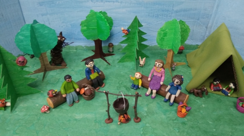 Дәрес башында балалар белән походка баруның нәрсә икәнлеген, кешеләр походка нинди максат белән йөрүләрен, нинди кием-салым уңайлы булуы турында әңгәмә үткәрелде. Әңгәмәдән соң катнашучыларга “Балалар туризмы балалар күзлегеннән” композициясен әзерләүдә иҗади эшләр конкурсында катнашырга тәкъдим ителде. Кул эшләре ясау барышында балалар фантазияләрен һәм сәләтләрен күрсәттеләр. Һәркем бер-берсе белән үз хис-кичерешләре һәм күнекмәләре белән уртаклашты. Балалар пластилин, төсле һәм ак картон, ташландык материал, гуаш буяулар, карандашлар кулланып композиция ясадылар. Шул рәвешле, балалар аерым детальләрне тоташтырырга өйрәндеәр, кул эшләнмәсендә булган вак детальләрен декор өчен ничек кулланырга кирәклеген белделәр.