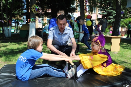 Сабантуй, гадәттәгечә музыкаль композиция белән башланып китте.Тәрбиячеләр һәм балалар Сабантуй кунакларын милли киемнәрдән икмәк һәм татлы чәк-чәк белән каршы алдылар.Бәйрәмгә Минзәлә һәм Алабуга муниципаль районыннарындагы халыкка социаль ярдәм күрсәтү бүлеге хезмәткәрләре белән берлектә әти-әниләр дә чакырылган иде.