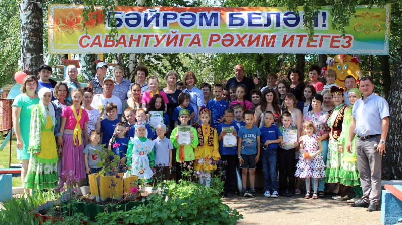 Бәйрәмдә : “Чүлмәк вату”, “Капчык киеп йөгерү”, “Канат һәм таяк тартышу”, “Кашыкка йомырка куеп йөгерү”, “Күз бәйләп бүләк кисү” кебек сабантуена хас уеннар әзерләнде.Һәрбер бала да үзе теләгән уенда катнашып бүләкләр отты,шулай ук җыр-биюгә булган осталыкларын да күрсәттеләр.Сабантуй кунаклары да читтә калмады,төрле уеннарда үзләрен сынап карадылар.