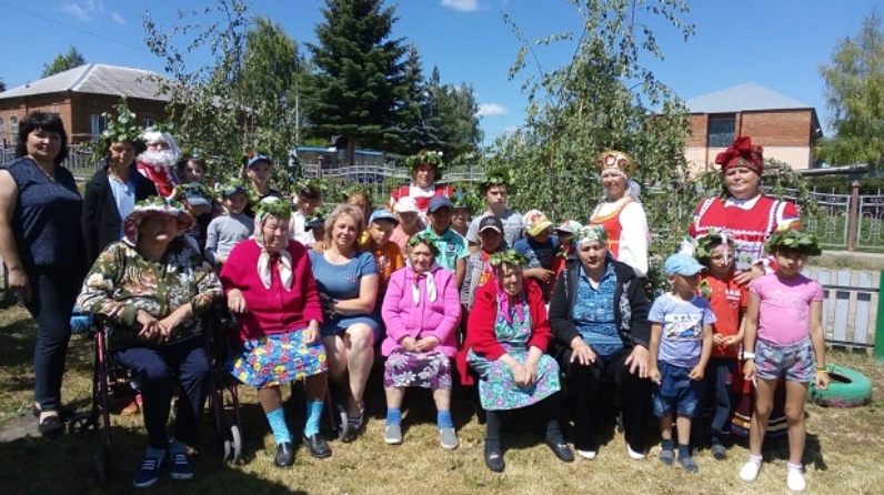 Изге Троица көнендә Баулы интернат - йорты социаль хезмәт алучылар һәм Кырым - Сарай авылы укучылары бергә халык күңел ачуларына җыелды. Бу Пасхадан соң 50 нче көнне Изге Троица көнендә бәйрәм ителә торган матур бәйрәм. Троица көне шулай ук христиан чиркәвенең туган көне дип атала, шулай ук «Яшел изгелекләр» дип атала, бәйрәмнең символы-яшь Каенкай.