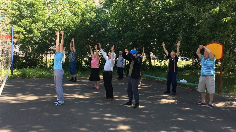 Саф һавада күңелле гимнастика чарасы сулыш алу һәм гомуми үсеш бирә торган күнегүләрдән башланды. Социаль хезмәт алучылар ритмик музыка астында физик күнегүләрне бик теләп башкардылар, үзләренең кәефләре яхшыруын һәм күңел күтәренкелеге тоюларын билгеләп үттеләр. Соңыннан инструктор «Кырмыскалар», «Бәреп уйнау», «Кайнар бәрәңге», «Соку бачи вира» дигән хәрәкәтчән уеннар үткәрде. Чара мускулларны йомшарту, сулышны торгызу өчен күнегүләр һәм өй шартларында шөгылләнү өчен инструктор киңәшләре белән тәмамланды.