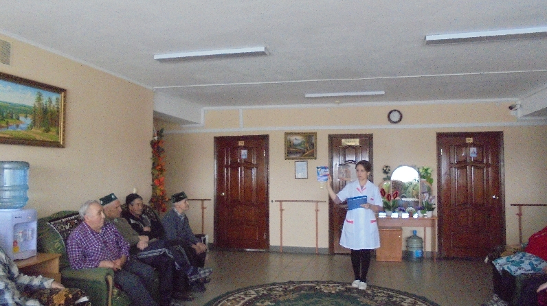 24 июнь 2019 ел Актаныш картлар һәм инвалидлар йортында буенча профилактик әңгәмә үткәрелде. Өлкән шәфкать туташы СПИД ка каршы чаралар турында мәгълүмат сөйләде, сорауларга җавап бирде.