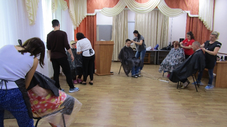Яр Чаллы шәһәренең “Изгелек” инвалидларны тернәкләндерү үзәгендә хәйрия нигезендә мастер–профессионал Галина Баглаева җитәкчелегендә «Креатив» мәктәп-студиясе студентлары социаль хезмәт алучыларга чәч кисү буенча чәчтараш хезмәте күрсәттеләр.
