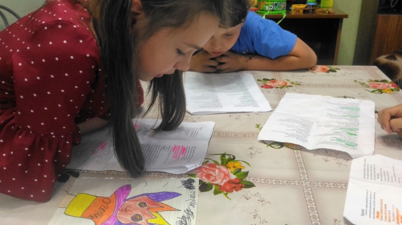 Дәрес башында һәм сөйләшүләр арасындагы тәнәфесләрдә балалар тиз сүз куештылар, ишетү, игътибар, белешмәләр, фантазияләр һәм гамәлләрнең килештерелгәнлеген өйрәнү өчен театраль уеннар кулланып разминка ясадылар. Балалар спектакль өчен сәхнә һәм декорацияләр ясау буенча фикер алышуны дәвам иттеләр. Персонажлар ясадылар.