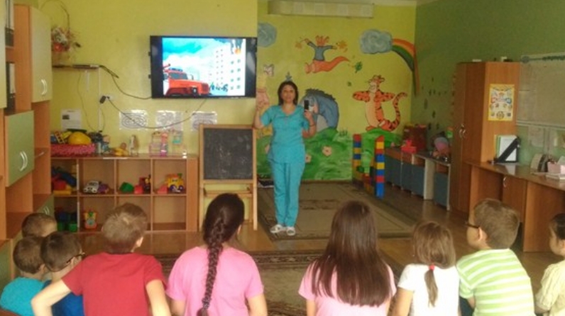 Балалар йортта янгын чыгу факторлары белән таныштылар. Шулай ук “Йортта янгын булса, кеше нишләргә тиеш” дигән видео ролик күрсәтелде.Төрле сораулар каралды: