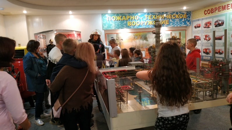 Экскурсия янгын часте музее белән танышудан башланды. Балаларны каршы алучы хезмәткәр иң беренче чиратта аларга оешмада үз-үзеңне тоту кагыйдәләре турында сөйләде, экскурсантларны беренче залга алып барды, анда янгын сагы үсеше тарихы, янгын чыгу сәбәпләре һәм янгын сүндерү алымнары турында сөйләде. Заманча залда балалар янгын-техник коралларын, биналарны, корылмаларны һәм бүлмәләрне янгынга каршы автоматик яклау системасын карадылар. Балалар янгын вакытында үзеңне ничек дөрес тотарга, янгын чыгуга юл куймаска, бу хакта телефон аша ничек дөрес итеп хәбәр итәргә кирәклеге турында бик күп файдалы мәгълүмат алдылар, бу безнең вакытта бигрәк тә актуаль, чөнки кечкенә балалар да электр приборларыннан файдалана ала, ә алар, барыбыз да белүенчә янгынның төп сәбәпләре.