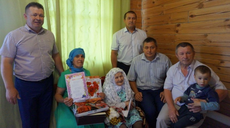 Юбилярга Россия Федерациясе Президенты Владимир Путинның котлау открыткасын, Балтач муниципаль район башлыгы исеменнән Рәхмәт хаты һәм кыйммәтле бүләк, соңгы эш урыны һәм авыл җирлеге исеменнән бүләкләр тапшырдылар.