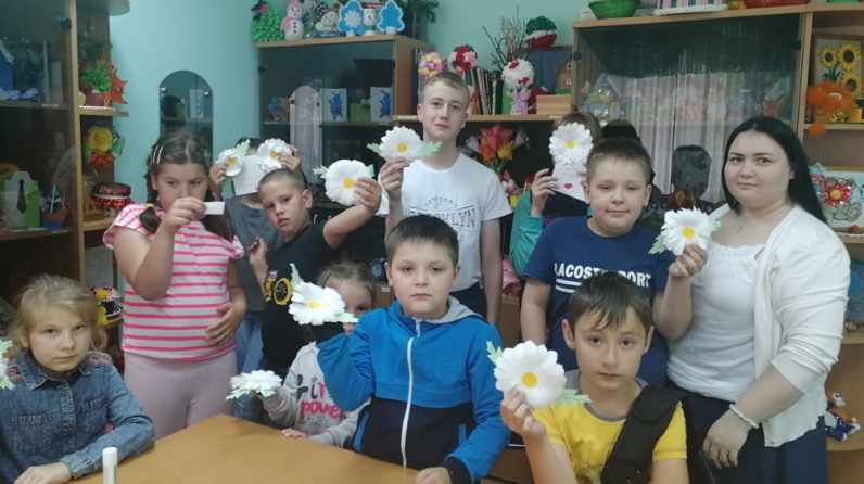 Дәрес башында хезмәт буенча инструктор балаларга бәйрәмнең барлыкка килү тарихы, аның символикасы, гаилә традицияләре турында сөйләде. Балалар гаилә турында табышмаклар чишүдә актив катнаштылар, үзләренең гаилә бәйрәмнәре һәм традицияләре турында сөйләделәр. Аннары инструктор балаларга кайчы, кәгазь һәм җилем белән эшләү кагыйдәләрен искә төшереп, чәчәк-ромашка ясарга тәкъдим итте. Балалар бик теләп эшләрен башкара башладылар, ул төгәллек, түземлек һәм пөхтәлекне таләп итә иде.