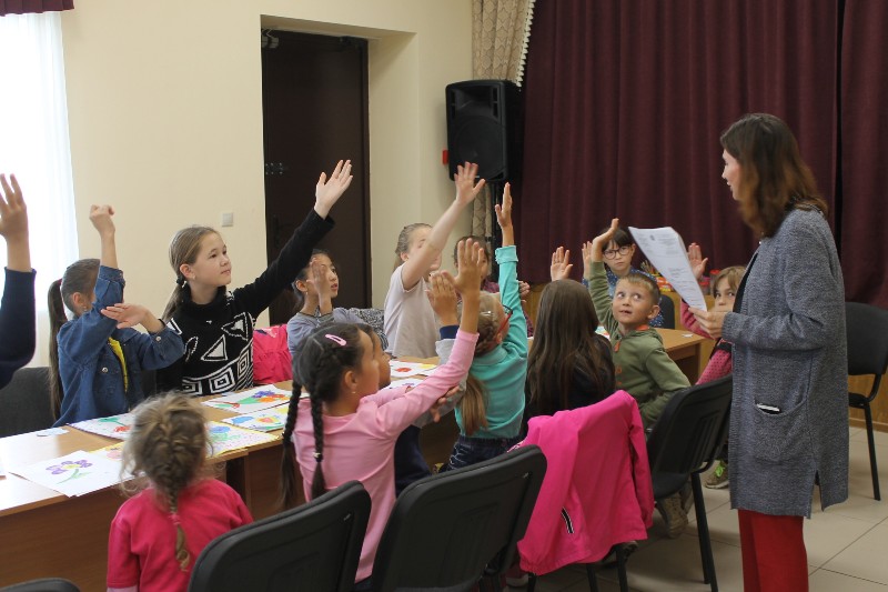 Аннан соң балалар белән " Калейдоскоп»дигән сорау - җавап үткәрелде. Балалар актив рәвештә сорауларга җавап бирделәр, балалар әдәбияты һәм әкият персонажлары өлкәсендә үзләренең белемнәрен күрсәттеләр.