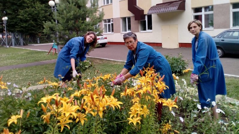 Аннан барысы бергә участокка чыктылар. Яраткан чәчәкләр мөмкин кадәр озаграк сөендерсен өчен, чәчәк ата торган бутоннар ясадылар. Бу берьеллык үсемлекләргә дә, шулай ук даими төстә чәчәк атучы күпьеллык үләннәргә дә, мәсәлән, розаларга да кагыла. Шулай ук дәрестә катнашучылар һава тамырларга яхшы үтеп керсен өчен, туфракны йомшарттылар. Чүп үләннәрен йолкыдылар, чөнки алар үсемлекләрдән туклыклы матдәләр генә алып калмыйча әле авырулар чыганагы да булып торалар. Әлеге паразитларның чәчәкләрен эшкәрттеләр.