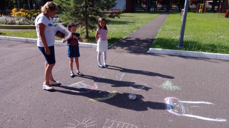 Чара ахырында белгеч балаларга асфальта рәсем ясау конкурсында катнашырга һәм үзләренең хәзерге вакытта булган кәефләрен ясарга тәкъдим итте. Асфальтта рәсем ясау бөтенләй дә кәгазьдә карандашом яки кисточка белән ясауга ошамаган. Биредә һәр бала үзенең сәләтен, кәефенең нинди булуын күрсәтә алды. Яшь рәссамнар карамагында кәгазь бите генә түгел, ә үз хыялларын күрсәтергә мөмкин булган зур бер территория булып торды.