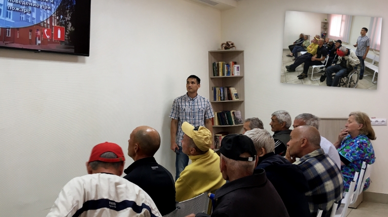 2019 елның 27 июнендә «Перекресток» социаль адаптация үзәгендә төркемле чара социаль программа "Өлкәннәр өчен куркынычсызлык мәктәбе» кысаларында янгын куркынычсызлыгы темасына 12 социаль хезмәт алучылар белән документаль фильм карау «Янгында» үткәрелде. Чараны хезмәт буенча инструктор Рафиков А. Д. оештырылды.
