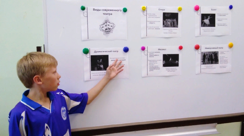 Әңгәмәдә балалар театрның барлыкка килү тарихы, аның үсеше һәм хәзерге заман театры төрләре: драма театры, опера, мюзикл, балет, пантомима белән таныштылар. Балалар театр һөнәрләре турында белемнәрен киңәйттеләр һәм сүзлек запасын баеттылар. Балалар үзләрен пантомима театры актерлары ролендә сынап карадылар, мимика һәм ишарәләр белән хайваннар, кошлар, әйләнә-тирә предметларны күрсәттеләр. Әңгәмә кызыклы һәм мавыктыргыч үтте.