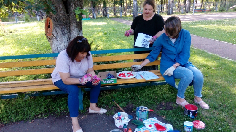 Клумбаларны рәсмиләштерү дәресенең гамәли өлешендә катнашучылар зур кызыксыну белән табигать ташларында камкалар, казлар, көлкеле миниатюралы кешеләр ясадылар. Клумбаларны тиздән яңартачаклар һәм ташлар аларның матур бизәге булып торачак.