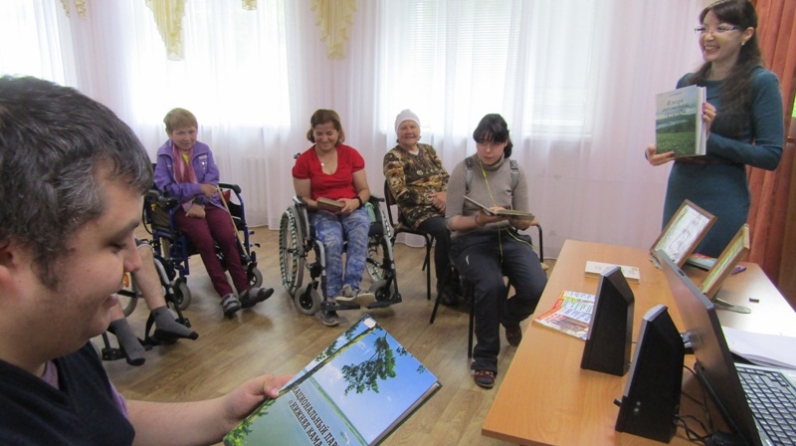 Китапханә белгече социаль хезмәт алучыларга тере табигатькә карата ихтирамлы һәм сакчыл караш булырырга кирәклеге турында искә төшерде һәм безнең республикада кеше гаебе белән юкка чыккан хайваннар, үсемлекләр төрләре турында мисаллар китерде. Катнашучыларны табигать турында китаплар һәм танып-белү басмалары тәкъдим ителгән “Табигатьне саклау - бәһасез бүләк!» дигән күргәзмә кызыксындырды. Аннан соң, китапханәче “Күпкырлы табигать” дигән викторина үткәрде, анда хәтта яшь социаль хезмәт алучылар да үзләренең тапкырлыгын, зирәклеген һәм тере табигать турында белемнәрен күрсәттеләр. Алар республиканың үсемлекләр, хайваннар дөньясы турындагы сорауларга, табышмакларга актив җавап бирделәр һәм конкурсларда катнаштылар.