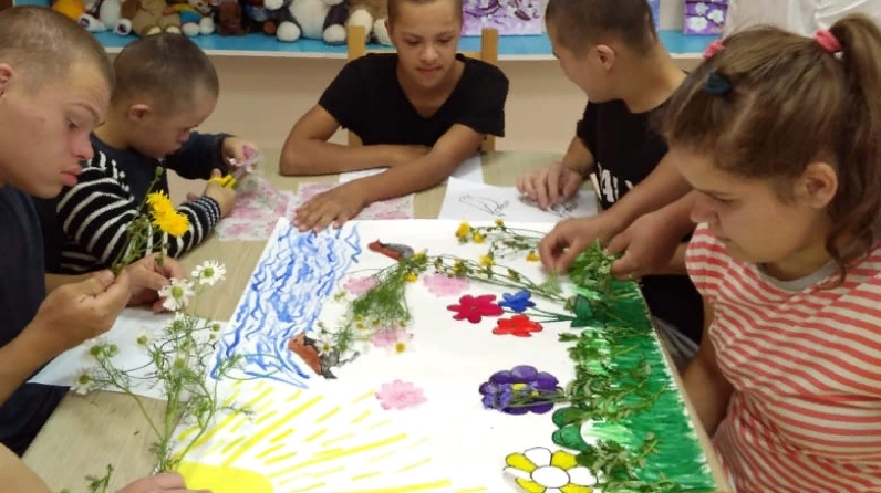 8 август көнне Югары Утар акылга зәгыйфь булган балалар йорты - интернат тәрбиячесе Галиуллина Нурия балалар белән бергә «Урман аланы» аппликация дәресе уткәрде .