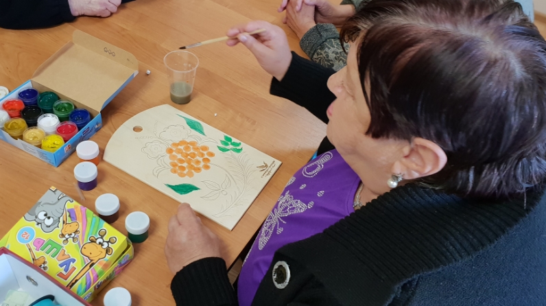 9 август көнне «Чирмешән картлар һәм инвалидлар интернат - йорты» нда социаль эш буенча белгеч Мотыйгуллина М.И. яшәүчеләр белән берлектә матурлык өчен генә түгел , ә аннары эштэ дэ кулланырга мөмкин булган кисү тактасына рәсем тошеруне оештырдылар. Бу дәрес бик кызыклы һәм мавыктыргыч булып чыкты. Яшәүчеләрнең кайберләре трафарет белэн файдаланды , ә кемдер үз фантазиясен күрсәтте. Рәсем тошеру тәмамланганнан соң барлык катнашучылар да үз эшләрен бик теләп алдылар.