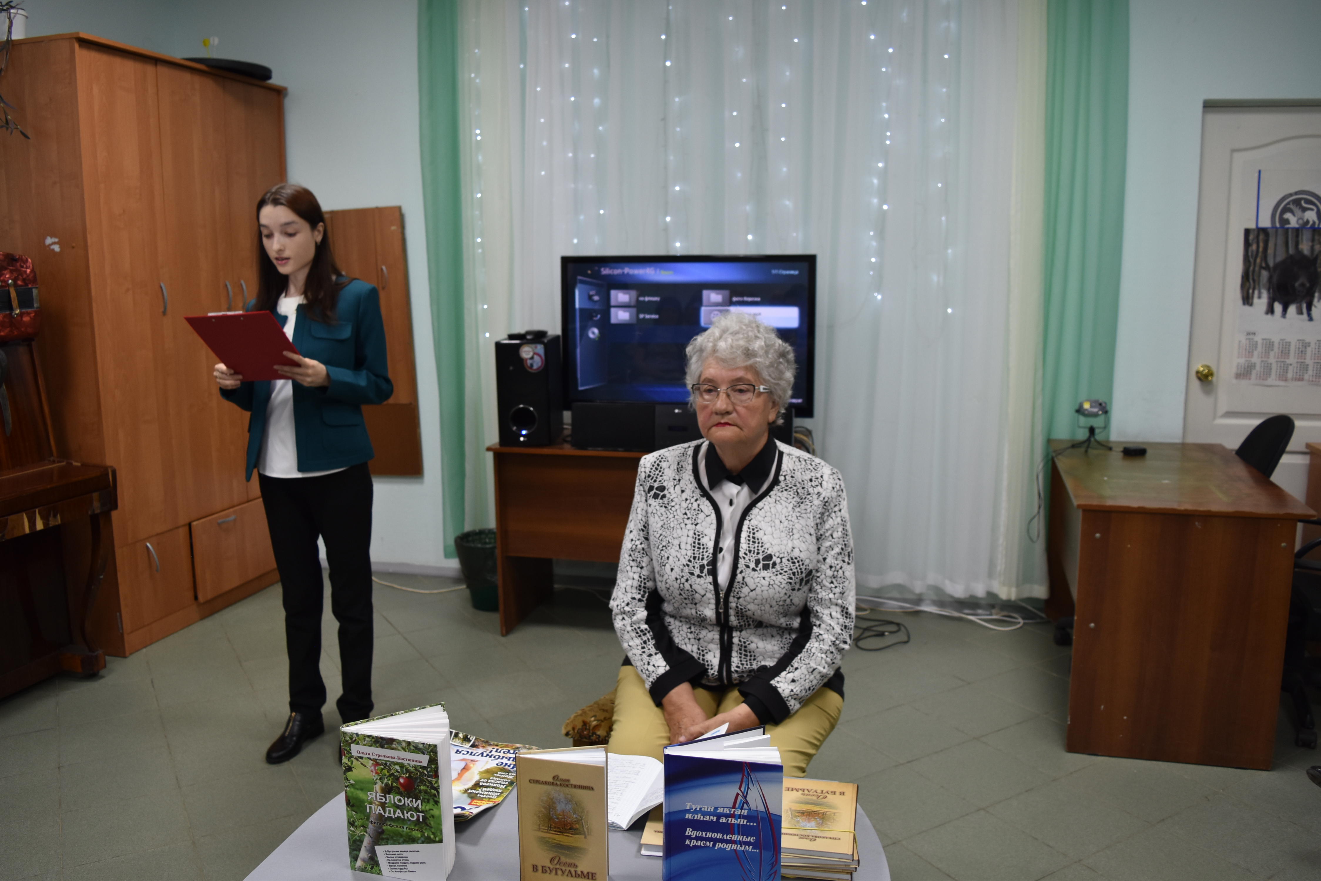 Инвалидларның «Берёзка» тернәкләндерү Үзәгендә «Син кара – яшәү шул хәтле күңелле!» диеп исемләнгән шигърият кичәсе үткәрелде. Кичәгә Татарстан Республикасының журналистлар берлеге әгъзәсе, Бөгелмә шәһәрендә яшәп иҗат итүче җирле шагыйрә Ольга Иван кызы Стрелкова-Костюнина чакырылган иде. Аның тормышы һәм иҗаты белән Казан федераль университеты студенты Резедә Кәримова таныштырды. Аннары шагыйрәнең иҗаты турында видеофильм карадык. Ольга Иван кызы үзенең шигырьләрен артистларча бик матур итеп сөйләде. Китапханәче Дания Хисамова Стрелкова-Костюнина китапларына экспресс-кузәтү уткәрде, аннан соң «Әнигэ» дигән шигырен сөйләде.