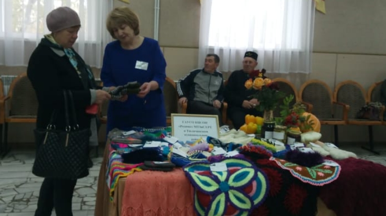 Бүген район мәдәният йортында ветераннар, өлкәннәр,район интеллигенциясе, оешма һәм предприятие хезмәткәрләреҗыелды.Өлкән яшьтәге гражданнарга консультация бирү өчен оешма җитәкчеләре катнашында түгәрәк өстәл оештырылды. Социаль хезмәт күрсәтү бүлекчәсе өлкән яшьтәге район гражданнарның кул эшләре күргәзмә-ярминкәсе оештырды.Өйдә социаль хезмәт күрсәтү бүлекчәсендә учетта торган өлкәннәребездә алдан ук «Тылсымлы клубок» технологиясе белән берлектә әлеге конкурска актив әзерләнделәр.Җылы бәйләнгән бияләйләр һәм оекбашлар һәм башка бик күп нәрсәләр бик телэп сатып алынды барлыгы 2300 сумга кул эшләре сатылды.