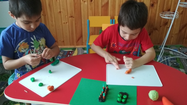 Мәктәпкәчә яшьтәге балалар белән әвәләп ясау дәресендә башта кәбестә һәм кишер түтәлләре ясадылар, ә соңыннан урамда бу яшелчәләрне тотып карадылар. Тәрбияче Сибгатуллина А.Ф. дәрескә яшелчә формасын һәм үзенчәлекләрен ясарга, яхшы таныш яшелчәләр турында күзаллауларны ачыкларга, иҗади күзаллауны үстерергә өйрәтү бурычын куйды.