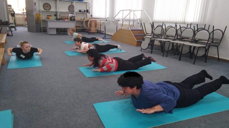 Шөгыль башында инструктор мускулларны тарттыру өчен күнегүләр белән разминка үткәрде. Катнашучыларга умыртка сөягенең хәрәкәтчәнлеген торгызуга юнәлдерелгән һәм арка авыртуын бетерү өчен күнегүләр комплексы тәкъдим ителде. Шөгыль гәүдә мускулларын гомуми ныгыту, умыртка баганасын сузу, шулай ук гәүдә торышын коррекцияләү күнегүләрен үз эченә алды. Социаль хезмәт алучылар инструктор тәкъдим иткән барлык күнегүләрне дә бик теләп башкардылар һәм аларның рухлары, гомуми кәефләре яхшыруын билгеләп үттеләр.
