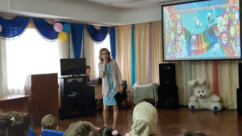 Малайлар һәм кызлар музыка дөньясына чумдылар, «Көйне тап», «Музыка белгече»дигән музыкаль викторинада көч сынаштылар. Балалар бик теләп таныган җырларны җырладылар, рәсем буенча җырны таныдылар, музыкаль уен коралларының яңгырашын таптылар һәм музыка уен кораллары төшкән рәсемнәрне җыйдылар. Күңелле, дәртле биюләр биеделәр. Ә соңыннан «Концерт» сериясеннән «Лунтик " мультфильмын карадылар.