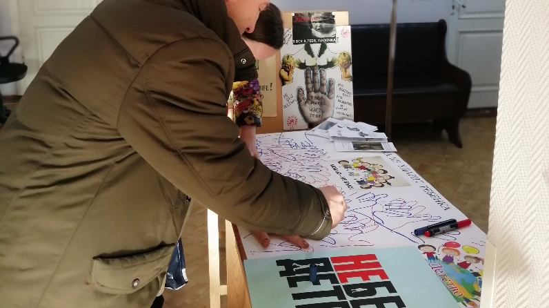 Акция барышында катнашучыларга ватманда үз кулларынның эзен калдырырга тәкъдим ителде, шуның белән алар «Бу кул балага сукмаячак» дигән сүзләр астында язылдылар.