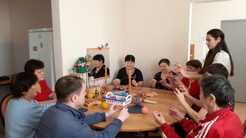 «Изгелек» инвалидларны тернәкләндерү үзәгендә хезмәт буенча инструктор Мәдинә Хаҗарова социаль хезмәт алучылар өчен «Куллар өчен гимнастика» дигән темага мастер-класс үткәрде.
