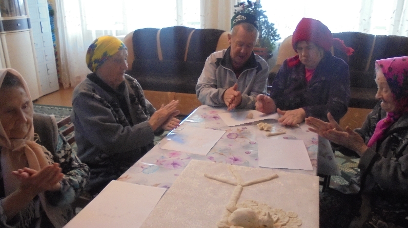 22 октябрь 2019ел Актаныш картлар һәм инвалидлар йортында тәрбияләнүче өлкәннәр «Тозлы камырдан «Тәвә кошы» ясадылар. Түгәрәкнең максаты: декоритив- гамәли иҗат эшләнмәләре ясау юлы белән матурлыкны күрә белү. Иҗади хыялларны үстерү , образлы фикерләүне үстерүгә ярдәм итү, ә иң мөһиме – яхшы кәеф булдыру.