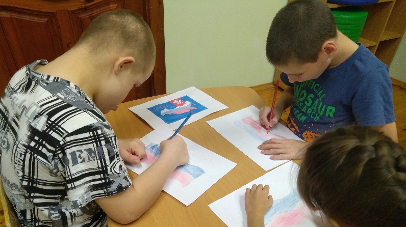Балалар белән без Россия әләмен ясадык. Рәсем ясаган вакытта мин аларга флагның нинди төстә булуы, һәр төснең әһәмияте турында сөйләдем. Ахырда Мин аларга Россия гимнын керттем. Балалар зур кызыксыну белән тыңладылар. Эшне зур кызыксыну белән башкардык. Эштән бик күп уңай эмоцияләр алдык.