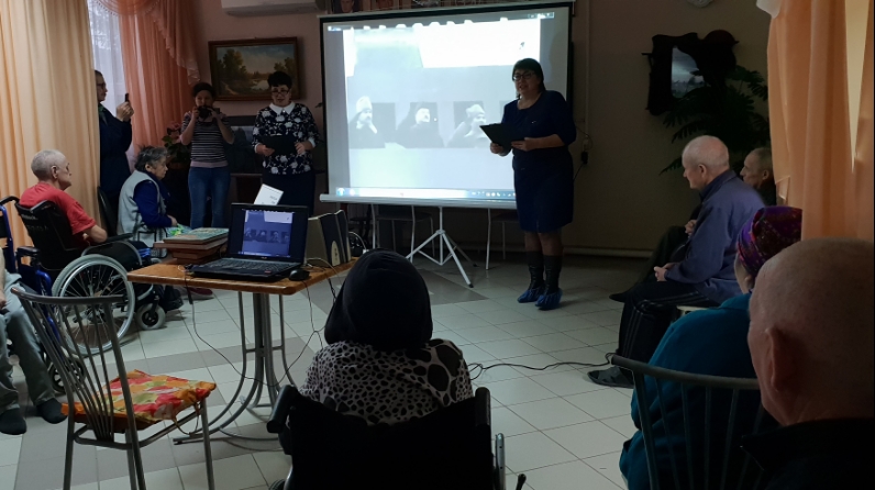 7 ноябрь көнне Район китапханәсе хезмәткәрләре тарафыннан , 1941 елда Кызыл мәйданда хәрби парад үткәрү көненә-Россиянең Хәрби дан көненә багышланган презентация күрсәтелде . Биредә яшәүчеләр өчен кунаклар Мәскәү шәһәренең Кызыл Мәйданында Бөек Октябрь социалистик революциясенең хәрби парад үткәрүнең кыскача тарихын сөйләделәр. Чыгышларны тыңлап, яшәүчеләр үзләренең шәхси истәлекләреннән чыгып әйткәннәрне расладылар, гәрчә бу елларда алар әле бөтенләй балалар булса да . Хикәя тәмамлангач, социаль хезмәтләр алучылар уку өчен яңа китаплар ала алдылар.