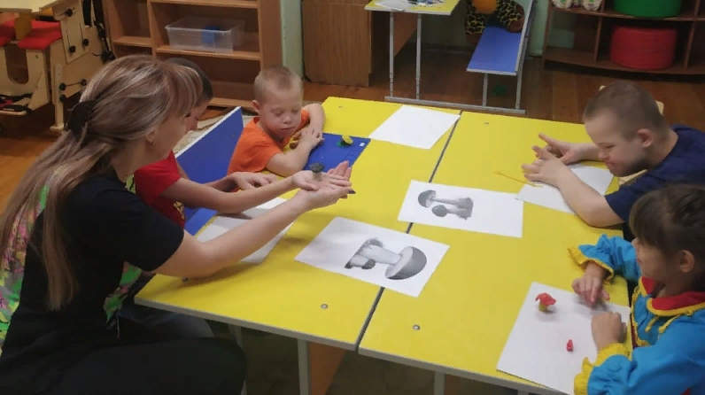 Тәрбияче, балаларның гөмбәләр турында белемнәрен баету, пластилиннан гөмбәнең төбен һәм эшләпәсен дөрес формада ясарга өйрәтү, вак моториканы, игътибарлыкны, хәтерне, төгәллекне үстерүне максат итеп куйган. Шөгыль барышында балалар хәзерге ел фасылы турында искә алдылар, гөмбәләр белән рәсем аша таныштылар, табышмаклар тыңладылар. Ә аннары тәрбияче ярдәме белән, бик тырышып пластилиннан үзләре гөмбәләр ясадылар. Шөгыль балаларга бик ошады.