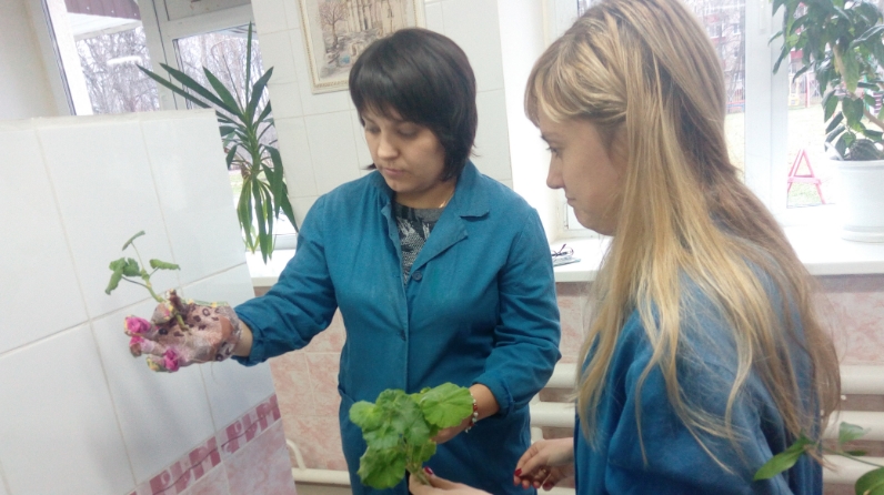 Дәреснең практик өлешендә катнашучылар элегрәк әйтелгән кагыйдәләр буенча чәчәкләрне карадылар, шулай ук Пеларгониянең тамырланган үсентеләрен дә чүлмәкләргә утырттылар. Җәй көне Үзәк участогында әлеге чәчәк ачык грунтка утыртыла, ә көз көне алардан үсентеләр алына һәм тамырланган яшь үсемлекләр янә чүлмәккә утыртыла.