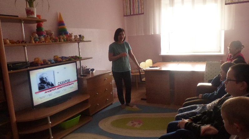 Яр Чаллының «Солнышко» мөмкинлекләре чикле балалар һәм яшүсмерләр өчен тернәкләндерү үзәгендә 15нче ноябрьдә өлкән яшьтәге балалар өчен тәрбияче Гарипова Р.Ш. күренекле галим, академик, Нобель премиясе лауреаты, хокук яклаучы Андрей Дмитриевич Сахаров язмышына багышланган интеллектуаль танып-белү чарасы үткәрде.