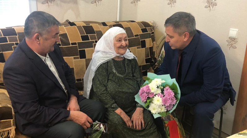 Юбилярга Россия Федерациясе Президенты Владимир Путинның котлау открыткасын, Балтач муниципаль район башлыгы исеменнән Рәхмәт хаты һәм кыйммәтле бүләк, соңгы эш урыны һәм авыл җирлеге исеменнән бүләкләр тапшырдылар.