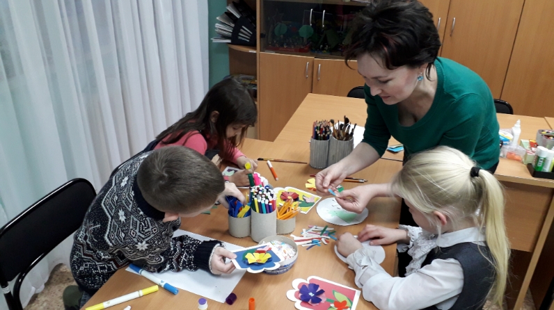 Соңыннан балалар үз куллары белән котлау открыткалары ясадылар, анда иң изге теләкләрен яздылар.
